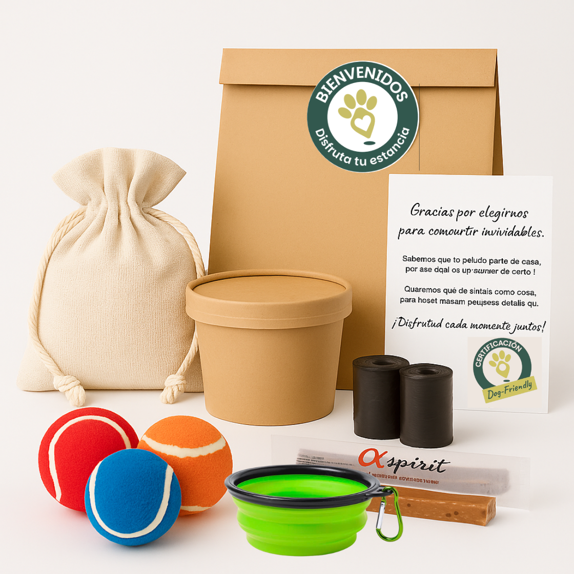 Este Kit incluye una pelota para jugar, bolsas higiénicas para paseos, un snack natural hecho a mano y un práctico cuenco portátil. Todo lo necesario para una cálida y especial bienvenida.